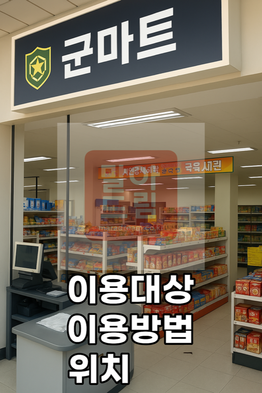 군인과 그 가족들에게 다양한 물품을 저렴한 가격에 제공하는 복지 시설 입니다.이 글에서는 군마트 이용방법, 위치, 이용대상에 대해 상세히 알아보려 합니다.