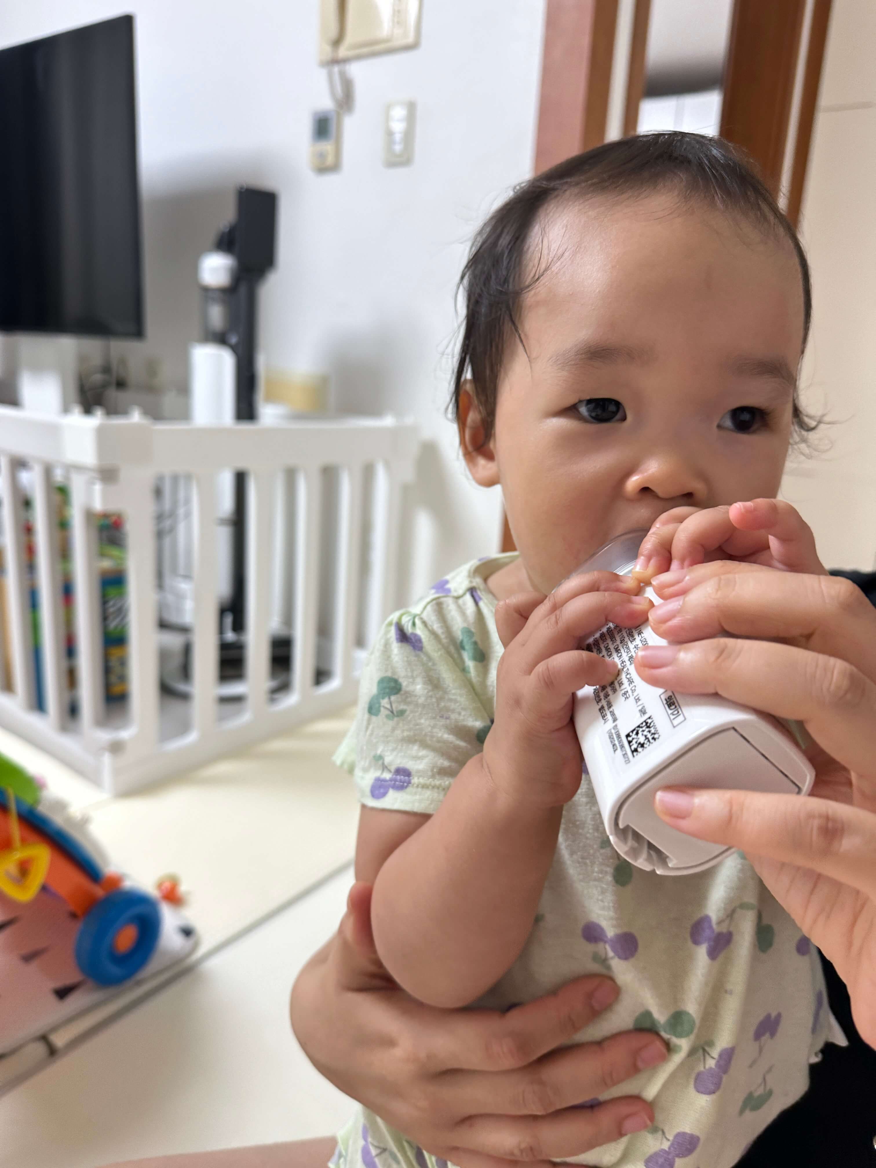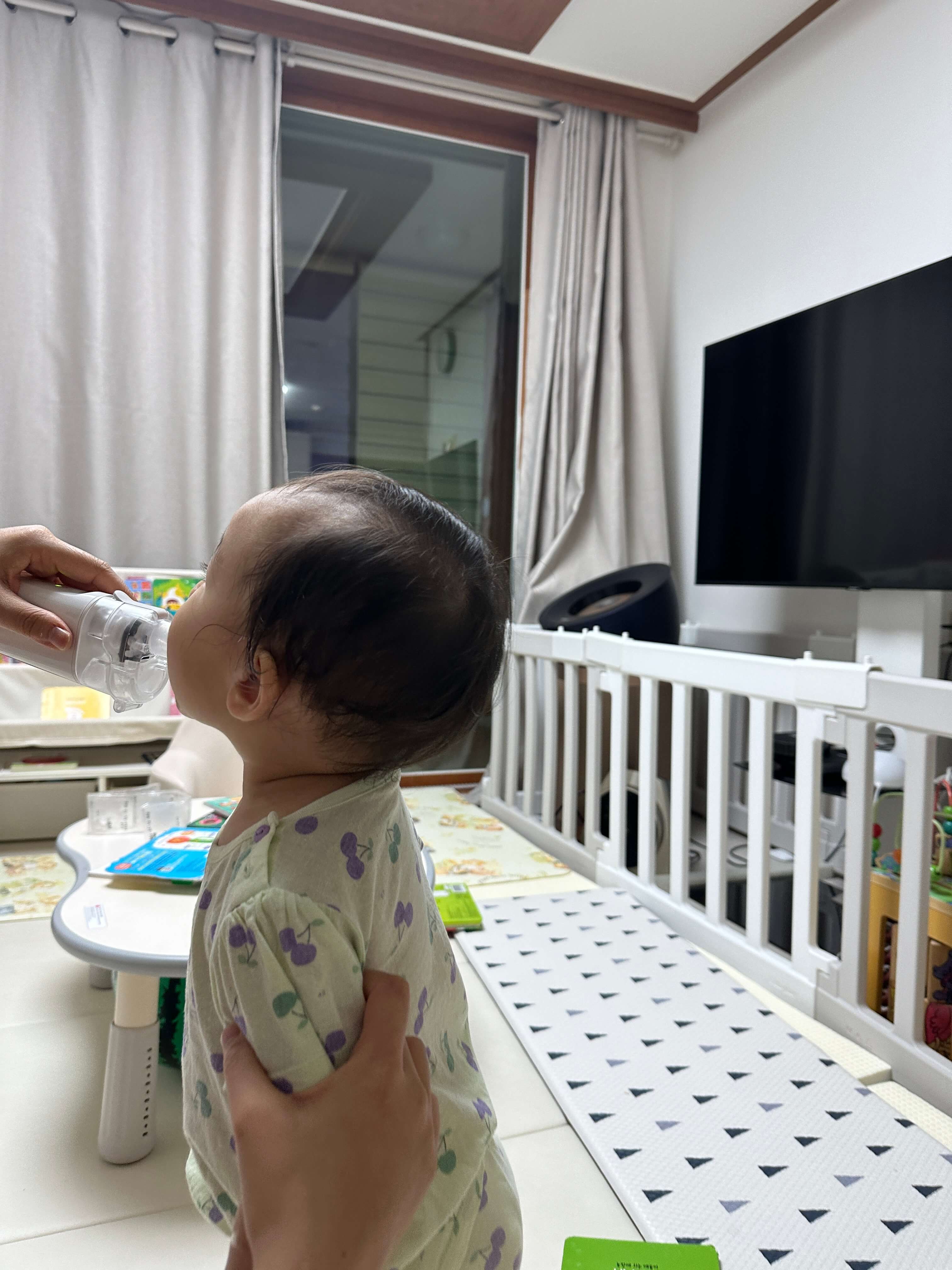 휴대용 네블라이저라 외출 시에도 사용할 수 있다는 점이 매력적이었지만, 실제로는 외출 시 짐이 많아서 집에서 주로 사용하고 있어요. 하지만 우리 아기처럼 가만히 앉아있지 못하는 활동적인 아이에게는 휴대용이 더 적합하다고 생각해요. 큰 기계는 아이의 집중력을 떨어뜨릴 수 있거든요. 아기가 네블라이저 사용을 잘 따라 해 줘서 다행이에요.